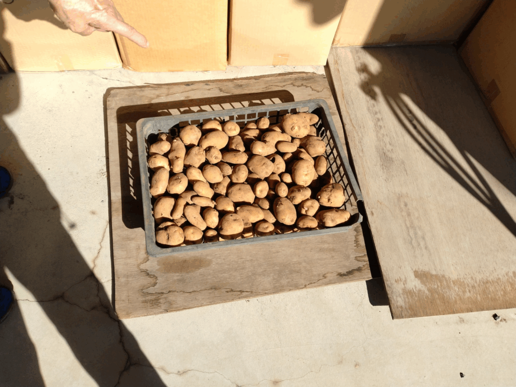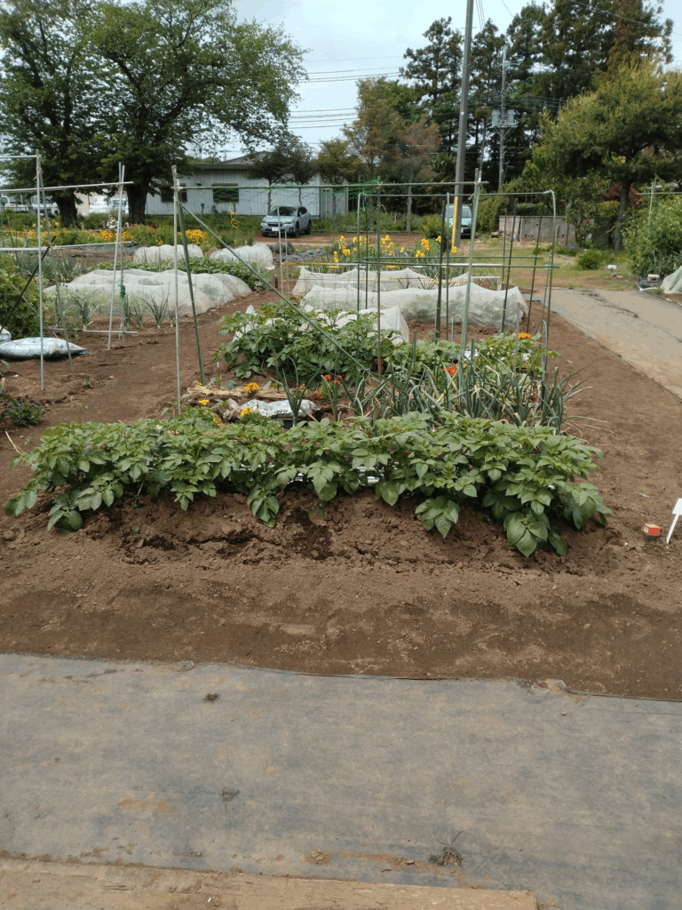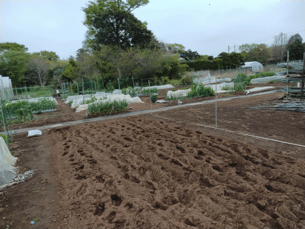 定植―じゃが芋(メークイン(2)、男爵(2)、きたあかり(2))  播種―、ニンジン