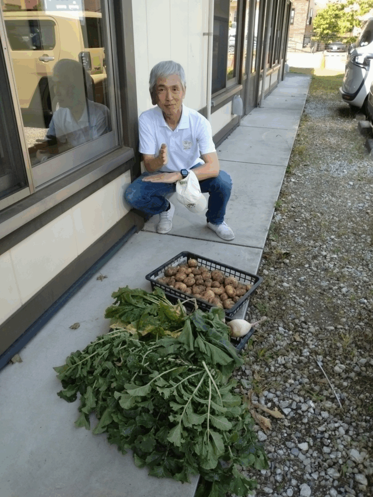 森の手話カフェ様との交流で、空利用区で育てたジャガイモと会員寄付の大根、カブを持参、利用していただけることに。障害があっても明るく懸命に努力されている皆様に、頑張らねばとの刺激を受け、笑顔とさわやかな気持ちに。