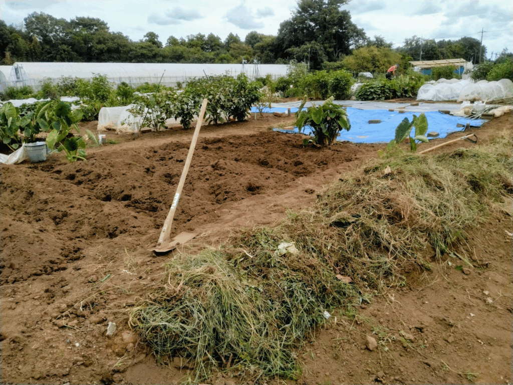 秋野菜づくりの準備 堆肥漉き込み