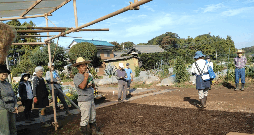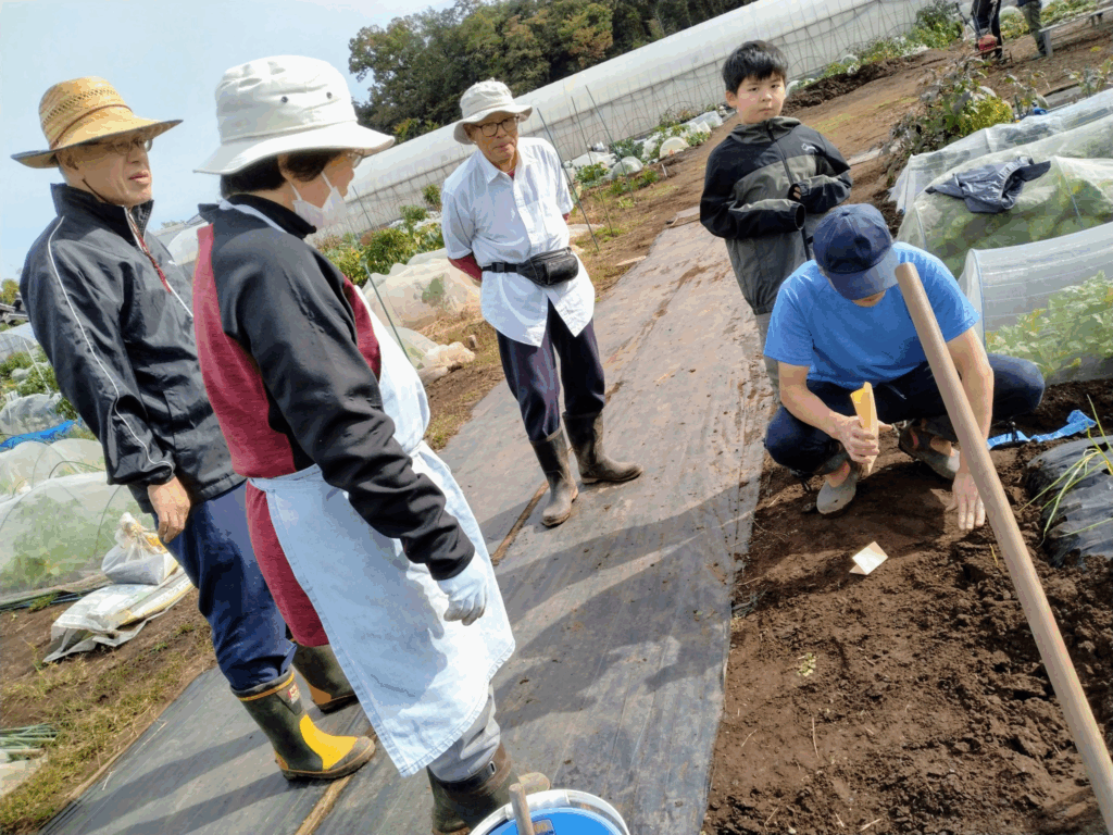 ネット情報では得られない指導、野菜が育つのは土の良さが重要、そのためのテクニック。なるほど、なるほどの連発。子供たちも参加し楽しそう。